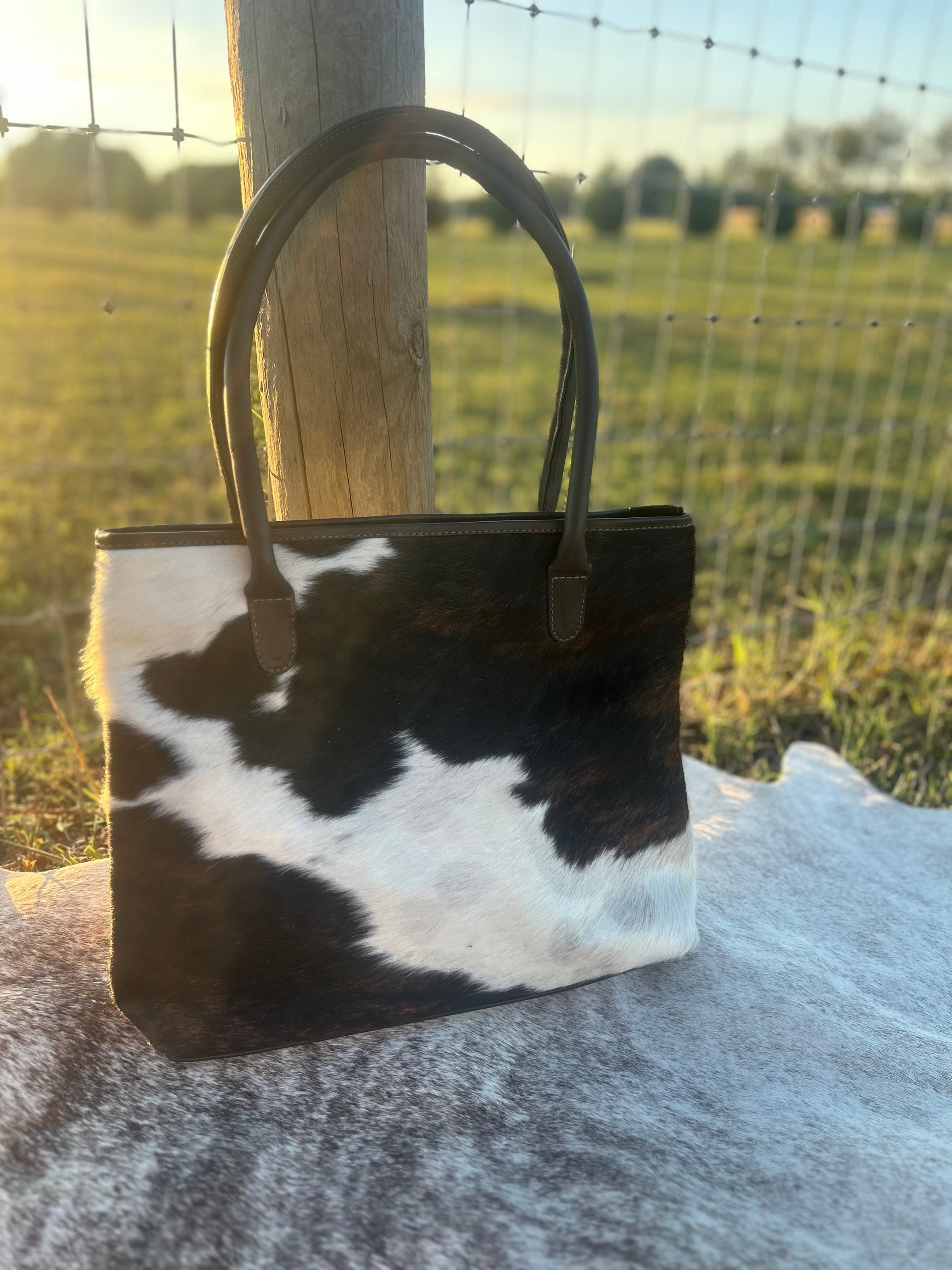 The Black and White Brindle Cowhide Purse is a stunning accessory that blends rustic charm with modern style. Crafted from genuine cowhide, this purse features a unique brindle pattern, making this piece one of a kind. The bold contrast of black and white adds a striking, sophisticated touch, while the soft leather offers durability and a premium feel. With spacious compartments and sturdy hardware, this purse is both functional and fashionable—perfect for everyday use or special occasions. Its Western-inspired design pairs effortlessly with casual or dressy outfits, making it a standout addition to any wardrobe.