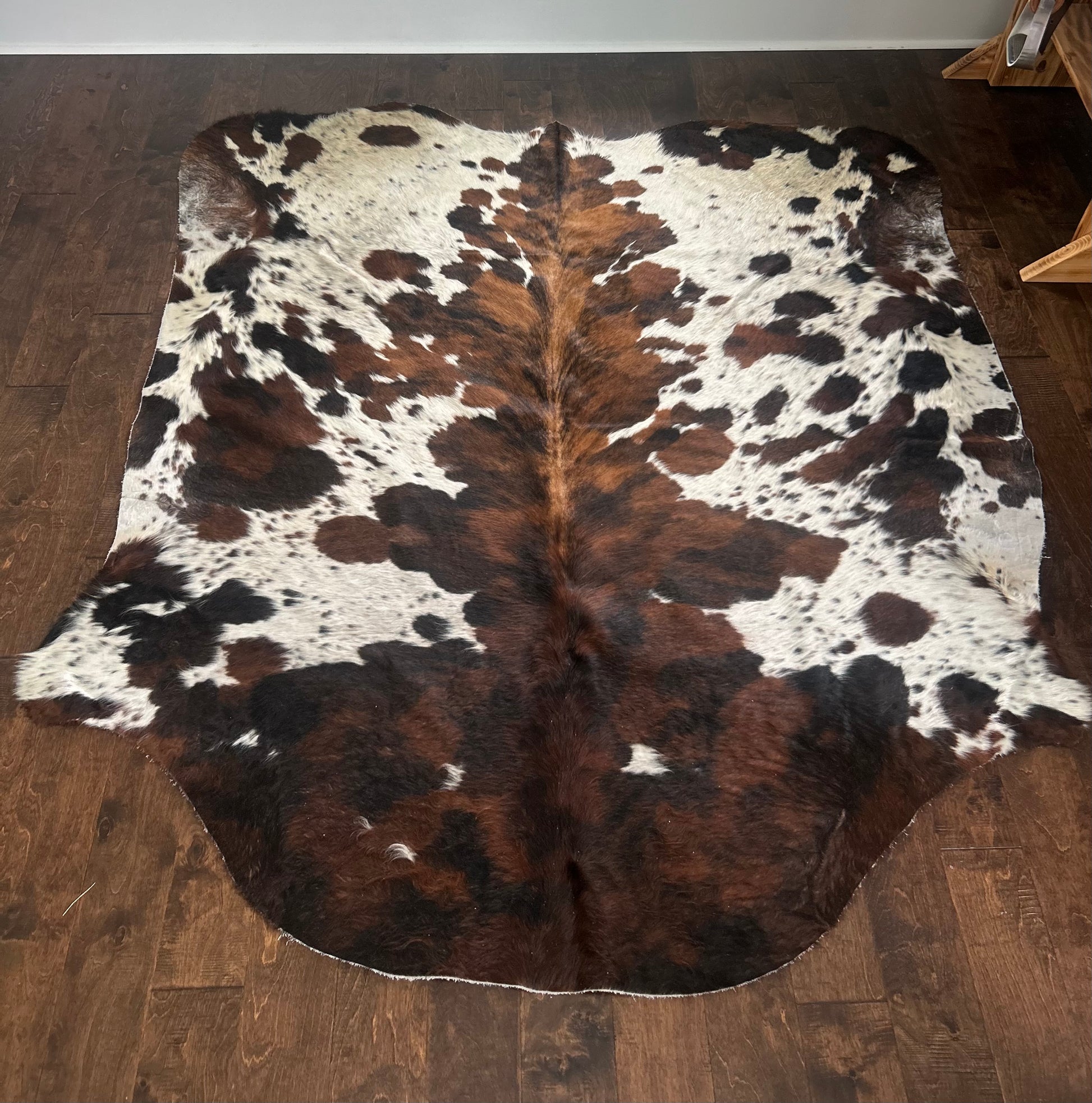 Showcase true western character with our Columbian Spotted Brindle Cowhide in Large. Featuring a rich brindle base highlighted by bold spotted patterns, each hide is completely unique and full of rustic charm. Perfect as a statement rug, layered décor, or wall display, this genuine cowhide brings timeless durability and natural beauty to any space.