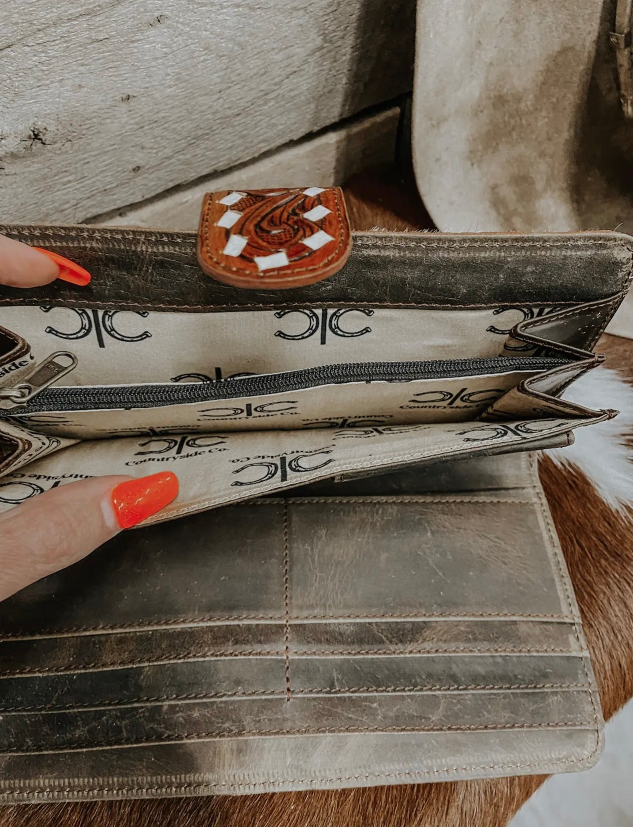 Cowhide with Tooled Leather Women’s Wallet Clutch