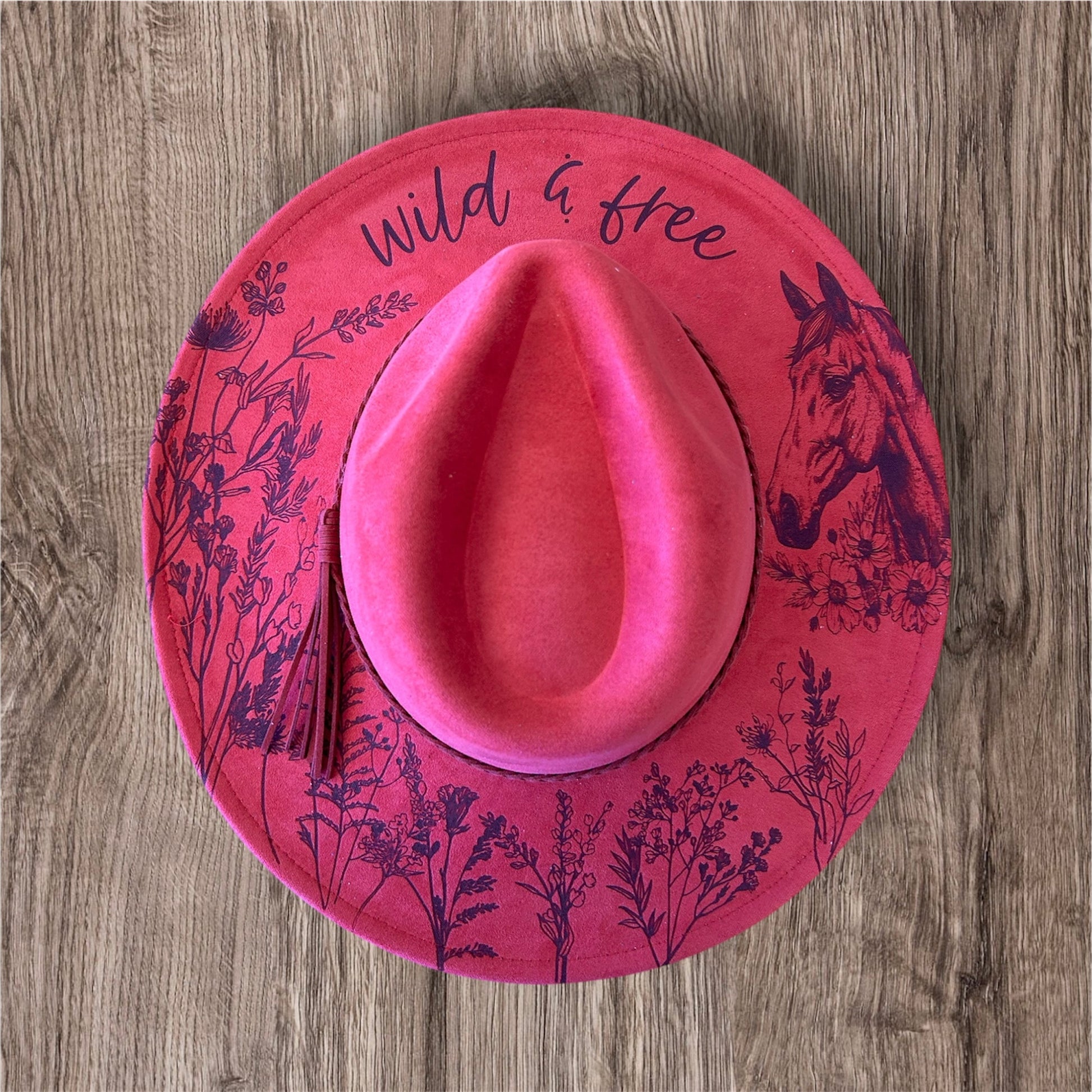 The Red Engraved Floral Horse Hat is a bold western-inspired accessory featuring a vibrant red base and intricate floral and horse engravings. Made from suede, it offers a unique textured look with an adjustable fit. Perfect for festivals, rodeos, or casual wear, it adds a stylish, rustic touch to any outfit.